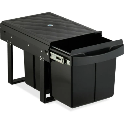 AmazonWaste separation: Kitchen bin for disposing of packaging, general waste, or organic waste Details: Waste bin with 3 compartments: 1x 15 l, 2x 8 l - Dimensions: 34.6 x 34 x 51.8 cm Extendable: Pull out bin with rail for full extension - Easy to fill and remove the containers Space-saving: Kitchen rubbish bin for under-sink cupboard installation - Includes mounting materials Practical: Built-in waste bin with lid to block odours - Also a shelf for bin liners, dustpan, etc.