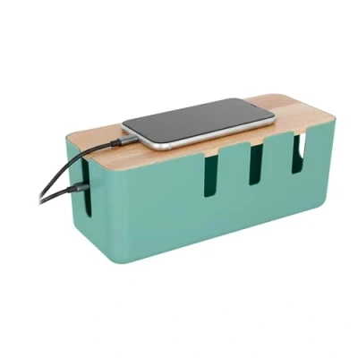 AmazonTidy: Large cable collector for hiding 2 socket strips and charging cables - no cable clutter Design: Modern cable storage box - elegantly combined with natural wooden lid - choice of colour Multiple: Charging cable box with 7 openings - charge several devices in parallel and place them on the lid Universal: Socket box for TV area or desk - dimensions HxWxD: approx. 11.5 x 30.5 x 12.5 cm Practical: Cable box protects sockets from dust and offers safety for children and pets