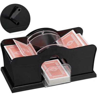 Relaxdays Card shuffling machine, 2 decks, with crank, manual device for playing cards the size 9 x 6.5 cm, plastic, black