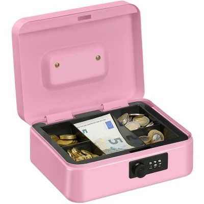 Relaxdays Cash Box, Coin Counter Tray Combination Lock Change & Notes, Steel, H x W D: 8.5 20 17 cm, Pink