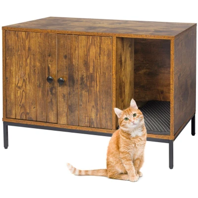 Relaxdays Cat Cabinet for Litter Tray, with Mat, Entrance, HxWxD: 55x80x50 cm, House, Brown/Black