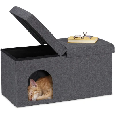 Relaxdays Cave Foldable, Sturdy Folding Bench, Indoor Cat Furniture, Pet Bed Hideaway, HxWxD: 38.5x74.5x37 cm, Grey, Fibreboard, 38.5x74.5x37cm