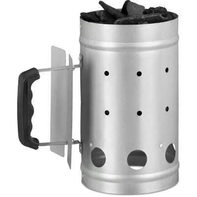 Relaxdays Charcoal Chimney Starter, Steel, BBQ Lighter, Stove, Grill, H x Dia: 27 16 cm, Grill Ignition, Silver