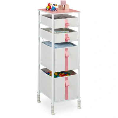 Relaxdays Chest, Children, HxWxD: 109.5 x 36 40.5 cm, 4, Metal, Drawer Cabinet, White/Pink, Steel