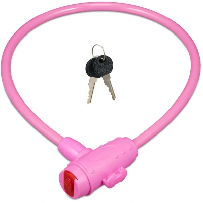 AmazonSafe: Lock for connecting children's bicycles and scooters - in pink Independent: With the bicycle lock, children learn to take responsibility for their property Practical: Cable lock for unlocking with 4-digit number combination - security without key Reliable: Wheel lock offers good protection against various theft methods size LxD: app. 70 x 1 cm Robust: Children's lock with sturdy metal cable and protective plastic coating against scratches