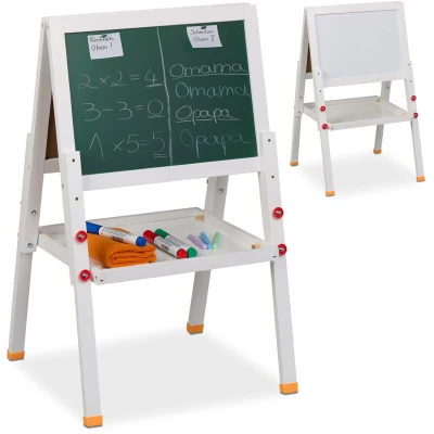 Relaxdays Children's Easel, Height Adjustable, Magnetic, Whiteboard & Chalkboard, HxWxD: 77 x 39 44.5 cm, Wood, White