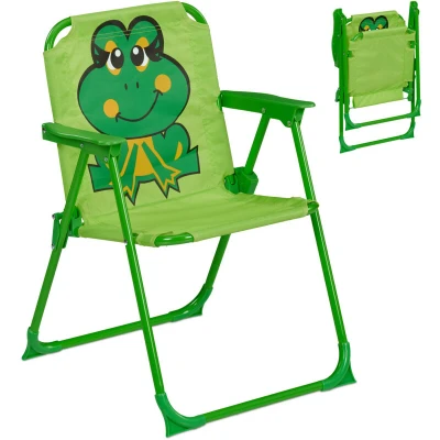Relaxdays Children's Folding Chair, Camping Seat with Frog, Lightweight, HWD: 51.5x36x37.5 cm, Portable, Multicoloured, 50% Polyester