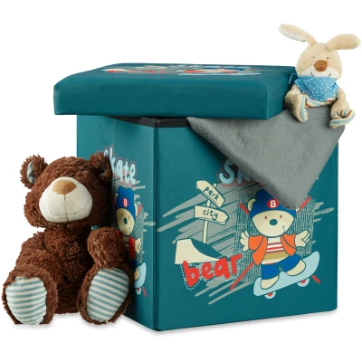Relaxdays Children's Storage Ottoman, Foldable, with Space, Toy Chest Lid, HxWxD: 38 x cm, Bear Motif