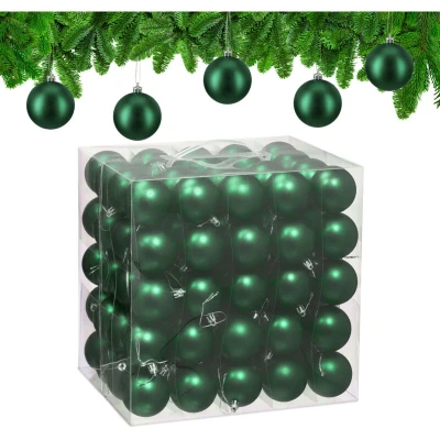 Relaxdays Christmas Baubles, Set of 100, Festive Tree Ornaments, D: 6 cm, Holiday Decorations, Plastic, Matte, Green