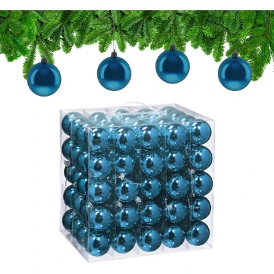 Relaxdays Christmas Baubles, Set of 100, Festive Tree Ornaments, D: 6 cm, Holiday Decorations, Plastic, Shiny, Petrol