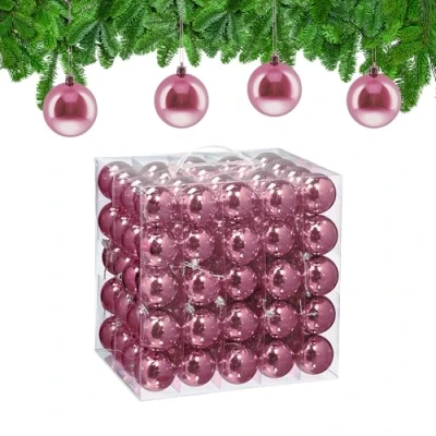 Relaxdays Christmas Baubles, Set of 100, Festive Tree Ornaments, D: 6 cm, Holiday Decorations, Plastic, Shiny, Pink