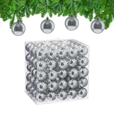 XXL set: 100-piece Christmas bauble set - Ideal for tree decoration - in silver colour Festive: Decorations for a splendidly adorned Christmas tree and a meaningful celebration Design: Christmas tree baubles with a glossy finish and practical silver ribbon for hanging Decorative: Sparkling baubles catch the light of the tree – creating a festive atmosphere Basics: Tree decorations made of durable plastic in a storage box, each approx. 6 cm wide