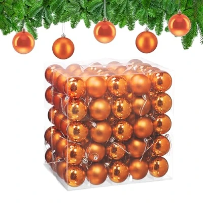 Relaxdays Christmas Baubles, Set of 100, Festive Tree Ornaments, D: 6 cm, Holiday Decorations, Shiny & Matte, Orange