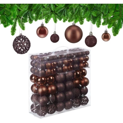 Relaxdays Christmas Baubles Set of 150, Glittering, Matt & Shiny Surfaces, Tree Ornaments, Plastic, ∅ 3, 4 6 cm, Brown, 7 x cm