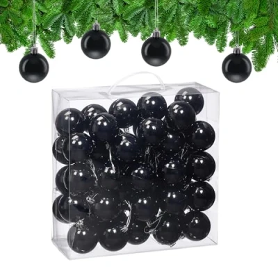 AmazonFestive: 50-piece Christmas bauble set - Ideal for tree decoration - in black colour Decorative: Shiny baubles reflect the light from the Christmas tree – creating a festive ambiance Festive: Christmas tree ornaments for a beautifully adorned tree and a joyful holiday season Versatile: Christmas baubles with a glossy finish for every décor style – including hangers Basics: Tree decorations made from durable, shatterproof plastic in a storage box – 6 cm diameter