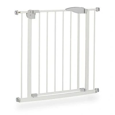 Safety: Door grilles to protect children and dogs - Making your home safe for toddlers and animals No drilling: Child safety gate for clamping between doors and stairs - Installation width: 75-84 cm Practical: Door guard with childproof, double locking mechanism - Can also be operated with one hand Convenient: Safety gate door closes automatically and can be locked at 90° opening angle in doorways Details: White staircase safety gate made of robust steel - Dimensions safety gate H x W: 79 x 71 cm