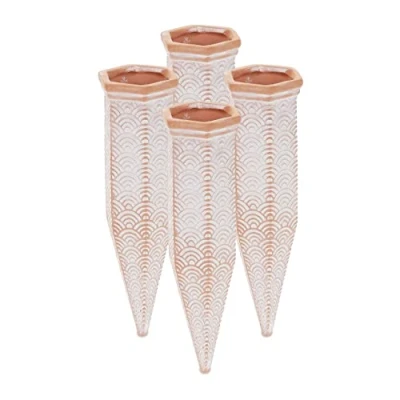 Planning on going on holiday this year but your plants need watering whilst you’re away? Then these 4 watering stakes are the perfect solution for you! Simply stick a 1.5 L plastic bottle filled with water in the watering spike and stick the spike into the soil. As soon as the soil becomes too dry, water will soak through the permeable material ensuring uniform watering. So you can go about your plans while knowing your plants are taken care of. Clay Cones in Detail - Dimensions H x W x D: approx. 18 x 5.5 x 5 cm - Opening W x D: approx. 4 x 4 cm - Weight: approx. 120 g each - Material: Ceramic - Colour: Terracotta, white Watering Spikes for Plant Pots - Suitable for house plants, outdoor plants, raised beds etc. - Automatically supplies plants with water for a few days - The watering stakes fit wine and plastic bottles of up to 1.5 L - Water-permeable clay releases water as needed - Perfect for when you go on holiday or those who lead busy lives Included in Delivery - 4 x watering