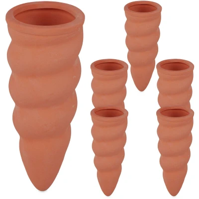 Relaxdays Clay Watering Spikes, Set of 6, Stakes for 1.5 L Plastic Bottes, Indoor & Outdoor Plants, Terracotta