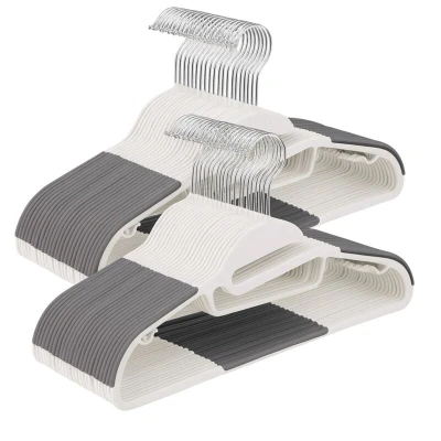 AmazonOrder: White hanger set with 50 hangers for a cohesive wardrobe appearance Material: Plastic hangers with rubber grip for secure hold - no slipping Smart: shirt hanger with bar for trousers, 2 small hooks for skirts and strappy tops, and tie holder Practical: slim hangers for space-saving storage - HWD: approx. 22.5 x 41.5 x 0.5 cm Versatile: plastic hangers for tops, jackets and more – also suitable for laundry use