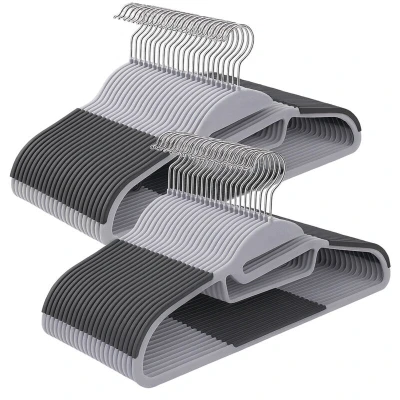 Amazon MarketplaceOrganisation: Grey hanger set with 50 hangers for a cohesive look in your wardrobe Material: Plastic hangers with rubberized grip for secure hold - no slipping Smart: shirt hanger with bar for trousers, 2 small hooks for skirts and strappy tops, and tie holder Practical: slim hangers for space-efficient storage - HWD: approx. 22.5 x 41.5 x 0.5 cm Versatile: plastic hangers for tops, jackets and more – also suitable for laundry use