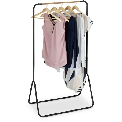 General description The Relaxdays Clothes Rack is a modern and stylish solution for your storage needs. With its open design, it provides ample space for hanging jackets, coats, blouses, and other clothing items neatly. Its versatile look allows it to fit seamlessly into any interior style, making it suitable for use in hallways, bedrooms, or dressing rooms. Technical specifications Dimensions (H x W x D): approx. 145 x 80 x 44 cm Width of clothes rail: approx. 65 cm Load capacity: approx. 20 kg Weight: approx. 1.8 kg Material: Iron Installation Quick and easy to assemble Can be placed freestanding; no wall attachment required Usage Ideal for hanging jackets, shirts, blouses, and other clothing items Suitable for hallway, dressing room, and bedroom use