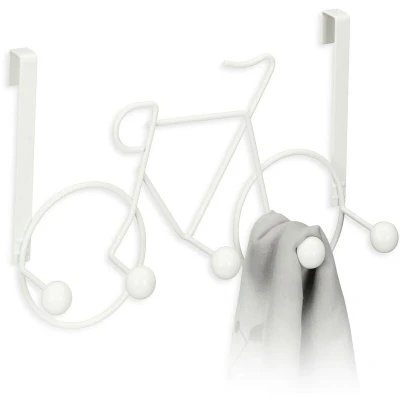Relaxdays Coat Hooks, Bicycle Design, 5 Hangers, Clothes Rail, Jacket Holder for Door & Wall, 22 x 32 10 cm, White