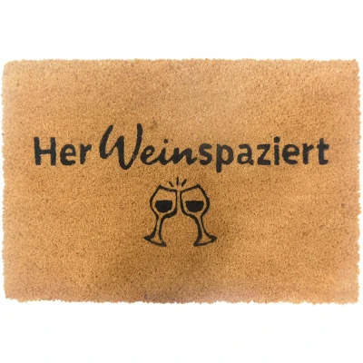 A cheeky saying on the door often says more than a thousand words. This coconut doormat will bring a smile to your face as soon as you step inside. It combines charming humour with practical benefits, as the sturdy coconut fibres effectively keep dirt outside, while the non-slip PVC backing ensures a secure grip. Weatherproof and durable, the doormat is perfect for the front door, patio, or hallway. A true eye-catcher that will tickle your funny bone as you wipe your shoes. Note: Coconut is a natural material and may vary slightly in fibre structure and colour. Coconut doormat in detail - Dimensions H x W x D: approx. 1 x 60 x 40 cm - Weight: approx. 1.5 kg - Material: coconut fibre, PVC - Available in various colours Non-slip doormat for your home - Dirt trap with a witty saying to brighten your entrance - Coconut mat keeps dirt, dust, and negativity at bay - Hard-wearing natural fibre – robust, durable, and weatherproof - Non-slip PVC backing ensures secure footing - Humorous
