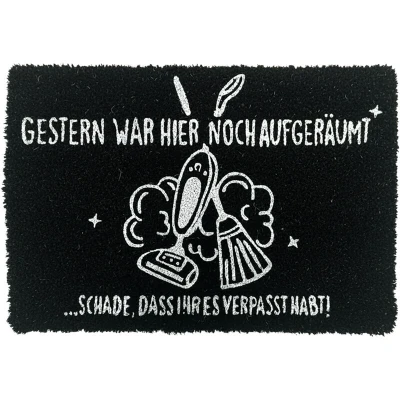 AmazonHumour: Doormat "Yesterday it was still tidy here" - Long-lasting mat for your entrance Robust: Door mat crafted from durable coconut fibres – natural, eco-friendly, and weather-resistant Non-slip: entrance mat with a PVC backing – doormat stays firmly in place on the floor Universal: Practical mat for indoors and outdoors – ideal for front, apartment, and patio doors Practical: No dirt or shoe marks indoors – just shake out the mat for easy cleaning.