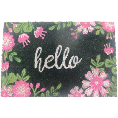 Relaxdays Coconut Doormat, Hello, 60x40 cm, non slip, weatherproof, indoor & outdoor scraper, door mat, multicoloured