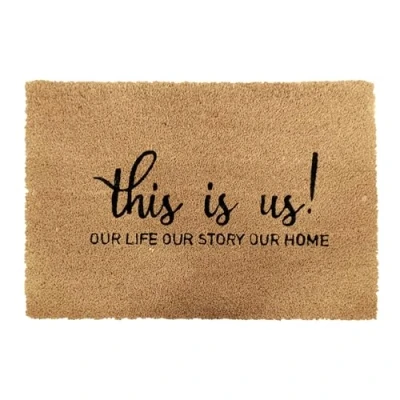 AmazonWelcome: Doormat with This is Us print – Sturdy mat for your entrance area Robust: Sturdy doormat made from natural coconut fibres – dimensions W x D: approx. 60 x 40 cm Non-slip: entrance mat with PVC backing – doormat stays securely in place on the floor Universal: Doormat suitable for indoor and outdoor use - Ideal for home, flat and terrace doors Practical: Keeps dirt and shoe marks at bay – simply shake the mat to clean it.
