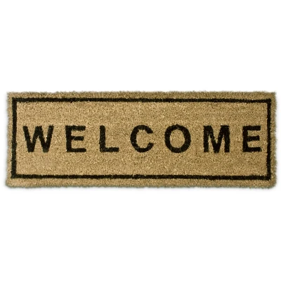 General description Make your guests feel instantly welcome with this doormat! Featuring a "WELCOME" print, it transforms your entrance area into a real eye-catcher. This narrow doormat fits nicely in any doorway and is designed for both indoor and outdoor use. Technical specifications Size: approx 75 x 25 cm (29.5 x 9.8 in) Weight: approx 1.5 kg (3.3 lbs) Top side made of natural coir fibres Rubber (PVC) underside Anti-slip and moisture-resistant Usage Coir fibres effectively catch dirt from shoes To clean, simply beat the dirt out Chic decorative element for any door Other information Sustainably grown and produced Included in delivery: Coir doormat (decorative items shown in product pictures are not included)
