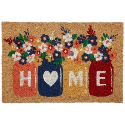 Welcome your guests with our delightful doormat. Featuring an inviting floral design and charming "home" lettering, it effortlessly complements any indoor or outdoor space. Crafted from natural coconut fibres, this doormat showcases exceptional weatherproof properties while also being robust and durable. With its slip-resistant PVC coating, it ensures a secure grip on various surfaces, allowing the mat to effectively trap dirt while staying firmly in place. Please note: Coir is a natural material and the structure and colour of the fibres may vary slightly. Coir Doormat in Detail - Size H x W x D: approx. 2 x 60 x 40 cm - Weight: approx. 1.6 kg - Material: Coir fibres, PVC - Colour: Multicoloured Non-Slip Floor Mat for Indoors and Outdoors - Doormat for catching dirt indoors and outdoors - Made of natural and durable coconut fibres - Perfect as a housewarming gift - Decorative floral print and inviting 'home' text - Door mat with non-slip PVC coating to keep it in place Included in
