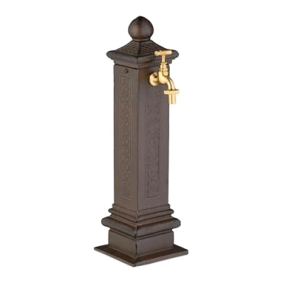 AmazonDesign: Brown column fountain in antique style - Dimensions H x W x D approx. 47 x 14 x 18.5 cm For outdoors: Standing fountain ideal for gardens - Made of durable cast aluminium and steel Practical: Garden water feature with traditional style tap - connection for hose inside the column Versatile: As a washing area after gardening, water tap for watering or decorative fountain Details: Garden tap with water connection - Thread inside D: approx. 2 cm - Holes for floor mounting