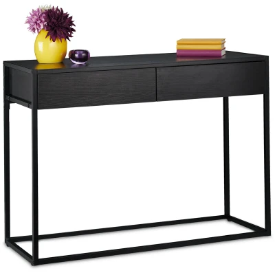 Relaxdays Console 2 Drawers, 80.5 x 110 40 cm, Slim Storage Table, Hallway & Living Room, Black, 80,5x110x40 cm