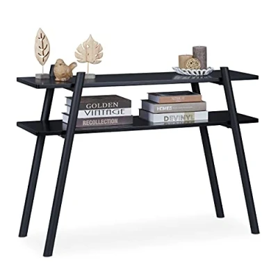 Relaxdays Console Table, 2 Shelves, Metal & MDF, Narrow Storage Table Hallway Living Room, H x W D: 80 110 40 cm, Black