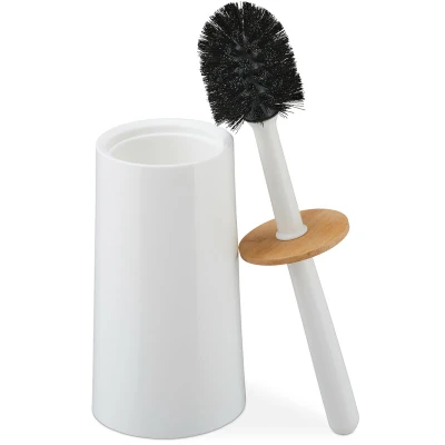 Relaxdays, container, plastic and bamboo, free standing, toilet brush with lid, white, H x D: 39 12 cm