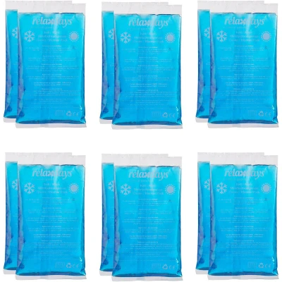 Relaxdays Cooling Pads, Set of 12, Cold Warm Compresses, 15 x 8 cm, First Aid, Reusable Gel Blue