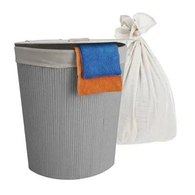 AmazonFor laundry: Keep dirty washing in one place - Dimensions HxWxD: 60 x 36 x 36 cm - Approx. 80 litres Design: Triangular bamboo laundry bin in grey – ideal for corners. Hygienic: Laundry bin with removable bag - Machine washable at 30°C Clever: laundry basket with flip-top lid – closed storage keeps contents hidden Practical: laundry bin folds flat to save space – stable with MDF base and metal ring