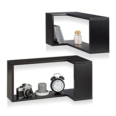 Eye-catching: The 2 floating wall shelves play together superbly - In black Fancy: The irregular and playful design will reinvigorate your otherwise plain and boring walls Universal: Decorative living room hanging shelves - Spice racks for your kitchen - Floor storage Hanging: Shelves appear to float freely - With 2 sturdy metal suspension brackets each Easy assembly: The individual parts are simply screwed together - Mounting materials included