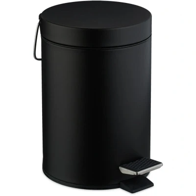 Amazon MarketplaceClean: Waste bin with 3 litre volume - for disposing of sanitary waste in bathroom and guest toilet Design: Black bathroom bin with matte look - WC bin is ideal for modern bathroom settings Hygienic: Removable plastic inner bin with handle - Easy to empty the bathroom bin in a hygienic way Practical: Bathroom rubbish container with pedal for hands-free opening and closing of the lid Basics: Round bin made of powder-coated steel and plastic - HxWxD: approx. 25 x 17 x 23 cm