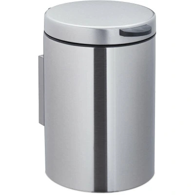 AmazonComfort: Bathroom rubbish bin for wall mounting - Hang up at your desired height - Lid with handle Silent: Wall sanitary bin with soft-close mechanism for slow and silent closing of the lid Decent: The round cosmetics bin is simple and functional - Holds 3 litres - Handy and compact Universal: Hygiene bucket with lid is suitable for the bathroom, kitchen and other rooms Design: Square cosmetic bin in matt stainless steel - rustproof and with anti-fingerprint coating
