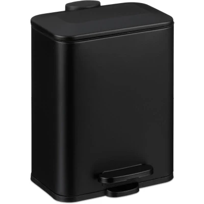 Relaxdays Cosmetics Waste, 5 Litre, Bathroom Soft Close Trash Can, Matt Finish, Removable Inner Bin, Pedal, Black, Iron, 30 x 20 26 cm