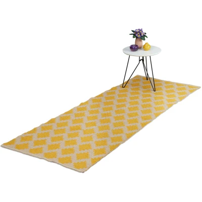 Relaxdays Cotton Runner Rug, 80 x 200 cm, Non Slip, Hand Woven, Diamond Pattern, Decorative Carpet for Any Room, Yellow