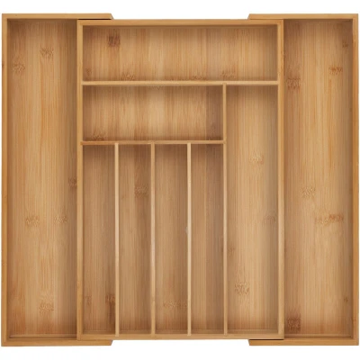 Relaxdays Cutlery Tray, 7 9 Compartments, 5 x 30.5 50 47 cm, Extendable Drawer Organiser, Bamboo, Kitchen, Natural, Silicone