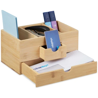 Relaxdays Desk, 2 Drawers, 3 Compartments, Made of Bamboo, HxWxD: 12 x 24 14.5 cm, Office Organiser, Natural