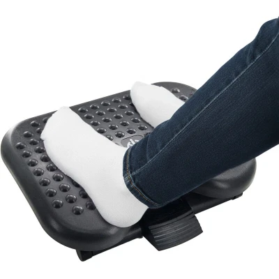 AmazonErgonomic: Footrest for improved posture at your desk – for the office and home office Adjustable: 3 height settings and ±30° tilt - footrest for optimal posture Massage function: Footrest with nubs for soothing foot reflex massage - promotes relaxation Stable: Footrest with textured surface for secure grip - Non-slip feet Details: Footrest made of sturdy plastic - Ample platform W x D: approx. 46 x 35 cm