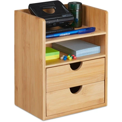 Relaxdays Desk Organiser, 2 Drawers & Shelves, Dimensions H x W D: 24 19 13 cm, Bamboo, Natural