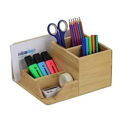 Relaxdays Desk Organiser, 5 Compartments, H x W D: 11.5 22 19 cm, Bamboo, Natural