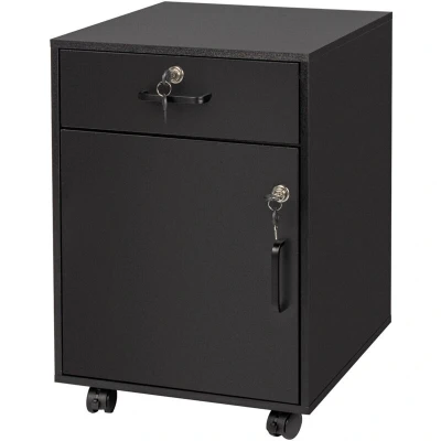 Relaxdays desk trolley, drawer & door, HxWxD: 57 x 40 cm, lockable, filing cabinet on castors, black