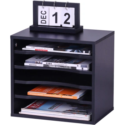 Relaxdays document holder, 5 compartments, office organiser HWD: 33 x 35.5 25 cm, modern, black